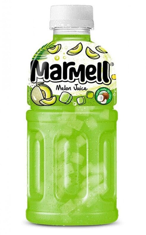 Напиток безалкогольный негазированный пастеризованный сокосодержащий с кусочками кокосового желе Ната де коко, со вкусом дыни.