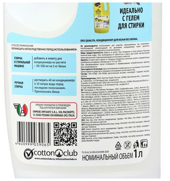 На сегодняшний день товар «Кондиционер для белья Qualita без запаха 1л» можно купить с кешбеком в 1 магазине: Яндекс.Маркет