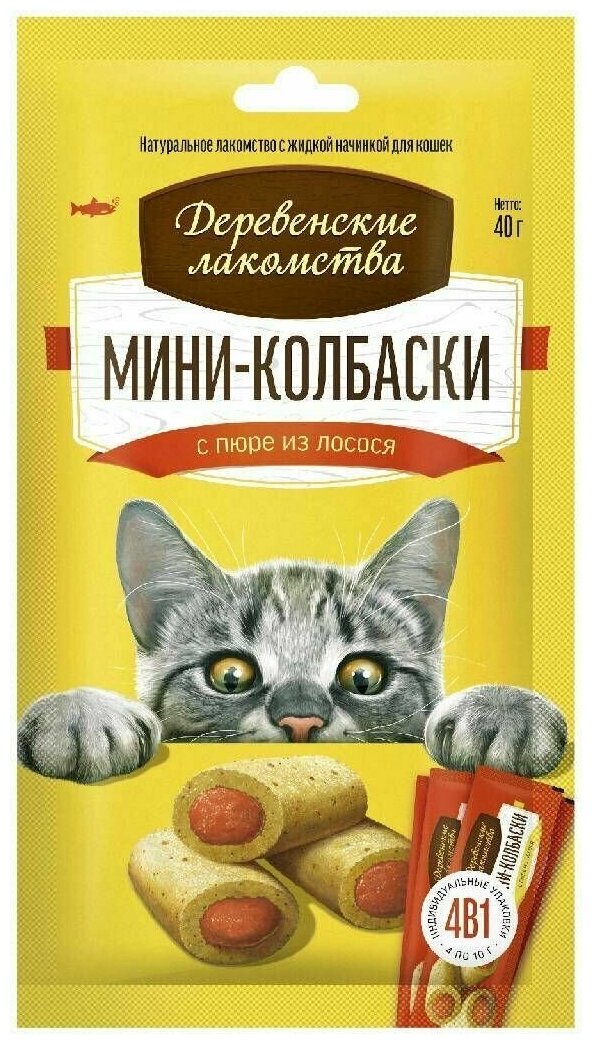 Мини-колбаски Деревенские лакомства с пюре из лосося 4шт*10г