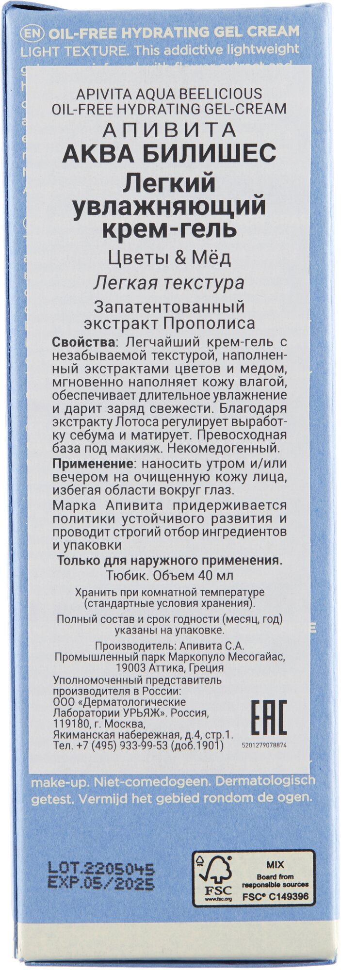 Apivita Легкий увлажняющий крем-гель тюбик 40 мл (Apivita ) (ЭХ99989414537)