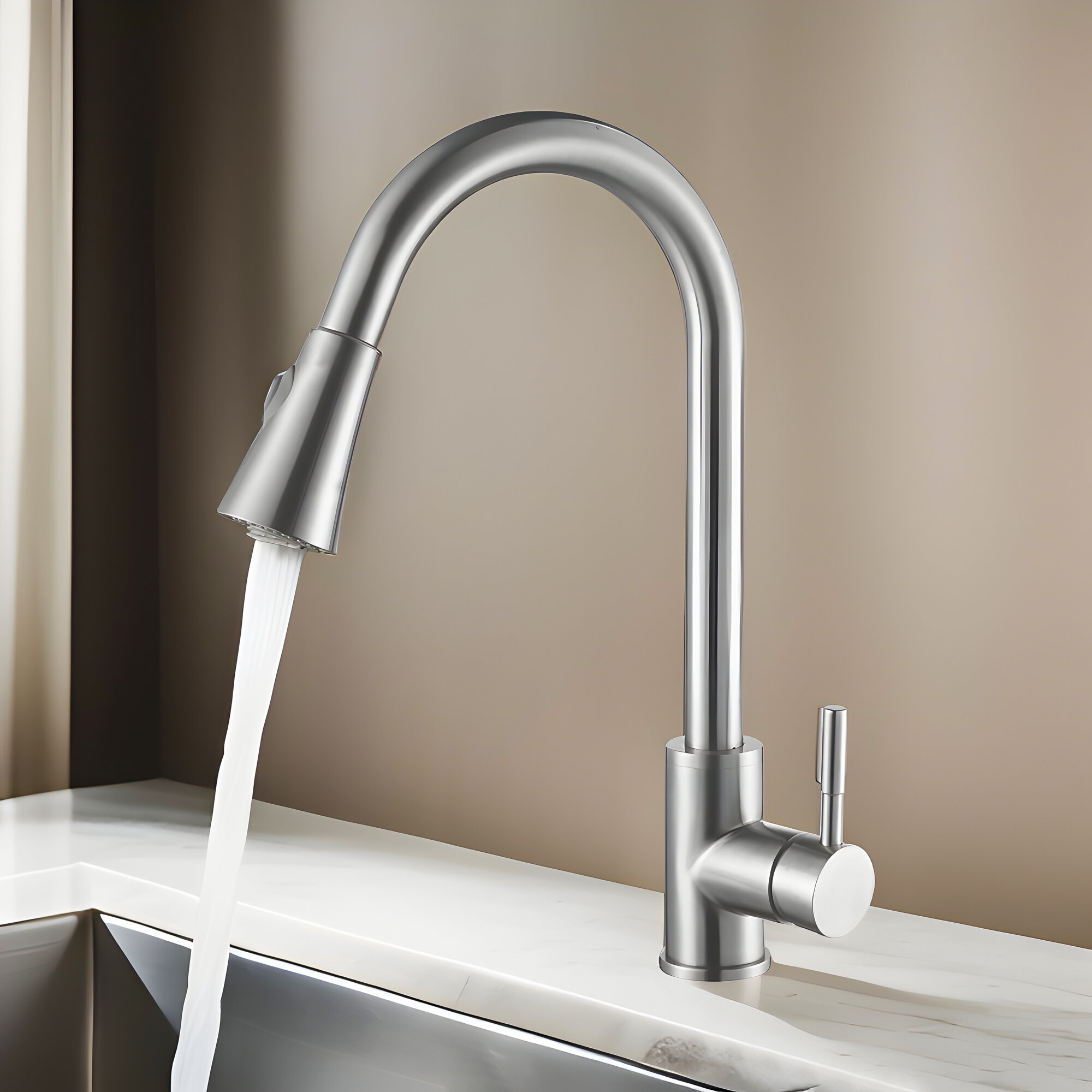 Смеситель со съемной лейкой и сменными режимами подачи воды сделает его использование более комфортным. Интенсивный режим воды быстрее справится со сложными загрязнениями. Мягкий режим поможет вымыть нежные листья салата или ягоды, и сэкономит расход воды. Выдвижная лейка позволит выполнить эти действия намного удобнее, направляя струю воды как нужно, а не подстраиваясь под нее. Помимо удобного функционала смеситель надежен и долговечен. Гарантия на коррозийную стойкость изделия - 5 лет со дняпродажи. Гарантия на картридж, аэратор, шланги гибкой подводки, резиновые прокладки - 1 год со дня продажи.