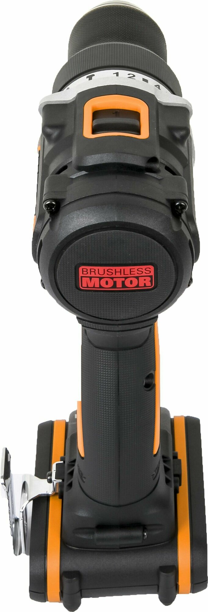 Аккумуляторная дрель оснащена мощным бесщеточным двигателем, который легко справляется с деревом, металлом, бетоном и кирпичной кладкой.
