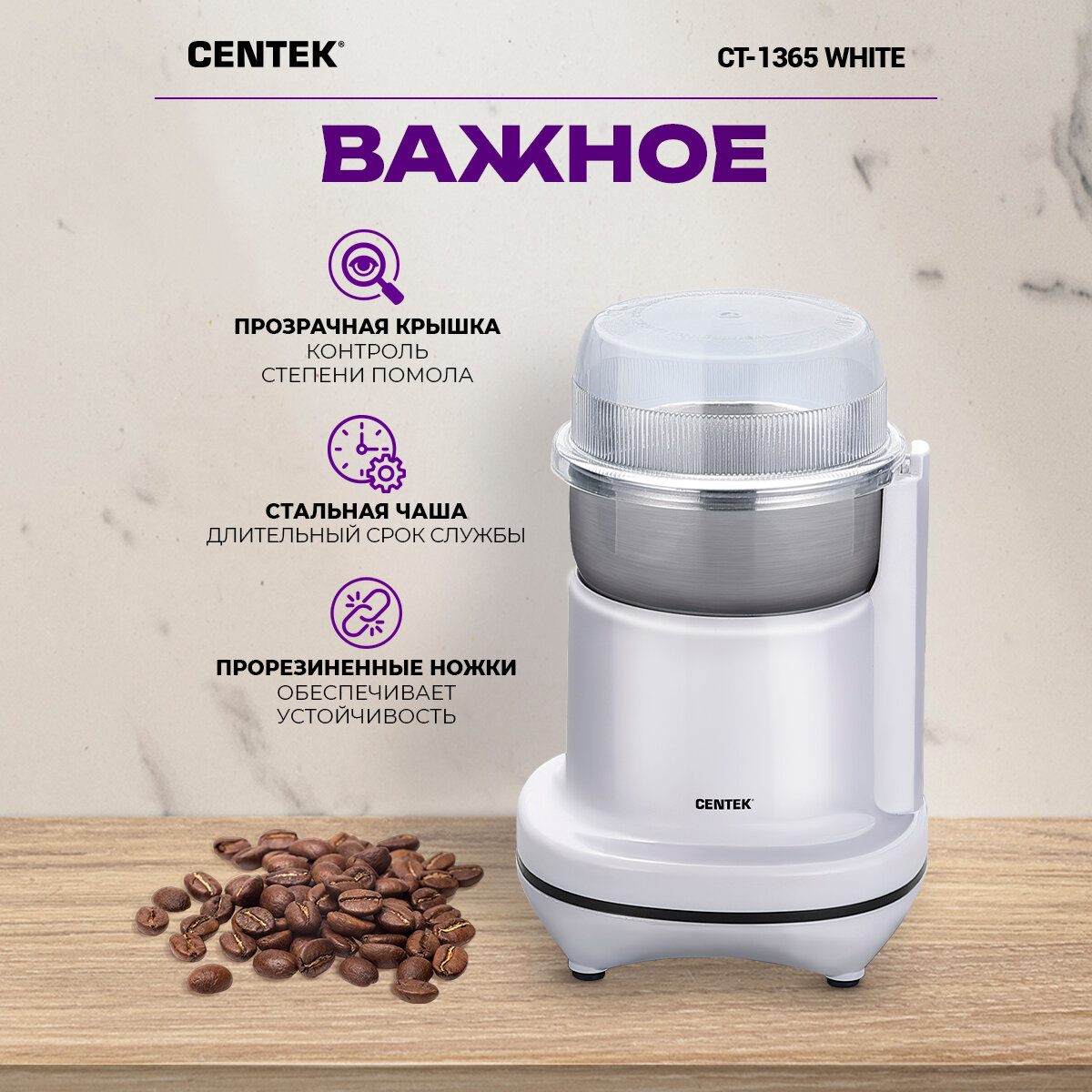 Сервис сравнения цен СкидкаГИД предлагает сравнить цены на товар «Кофемолка CENTEK CT-1365 White»