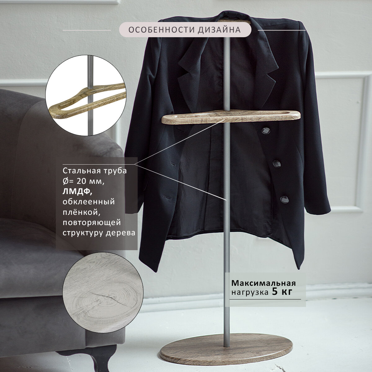 Вешалка костюмная Мебелик металлик/дуб сонома Hoff Дэви 3