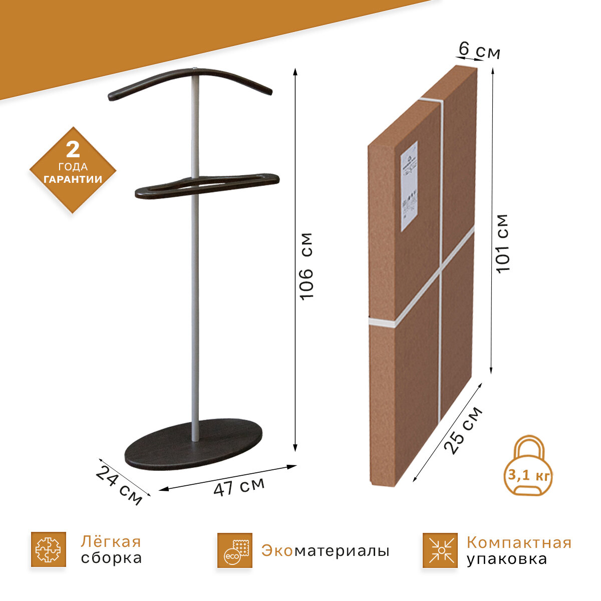 Вешалка напольная - это современное решение для аккуратного хранения вашей одежды. Простая и удобная модель дополнит ваш интерьер и решит проблему аккуратного размещения одежды. Прочная металлическая конструкция в сочетании с основанием из ЛМДФ придает данной модели надежности и устойчивости, а малогабаритные размеры позволят вешалке прекрасно вписаться в современный дизайн помещения.