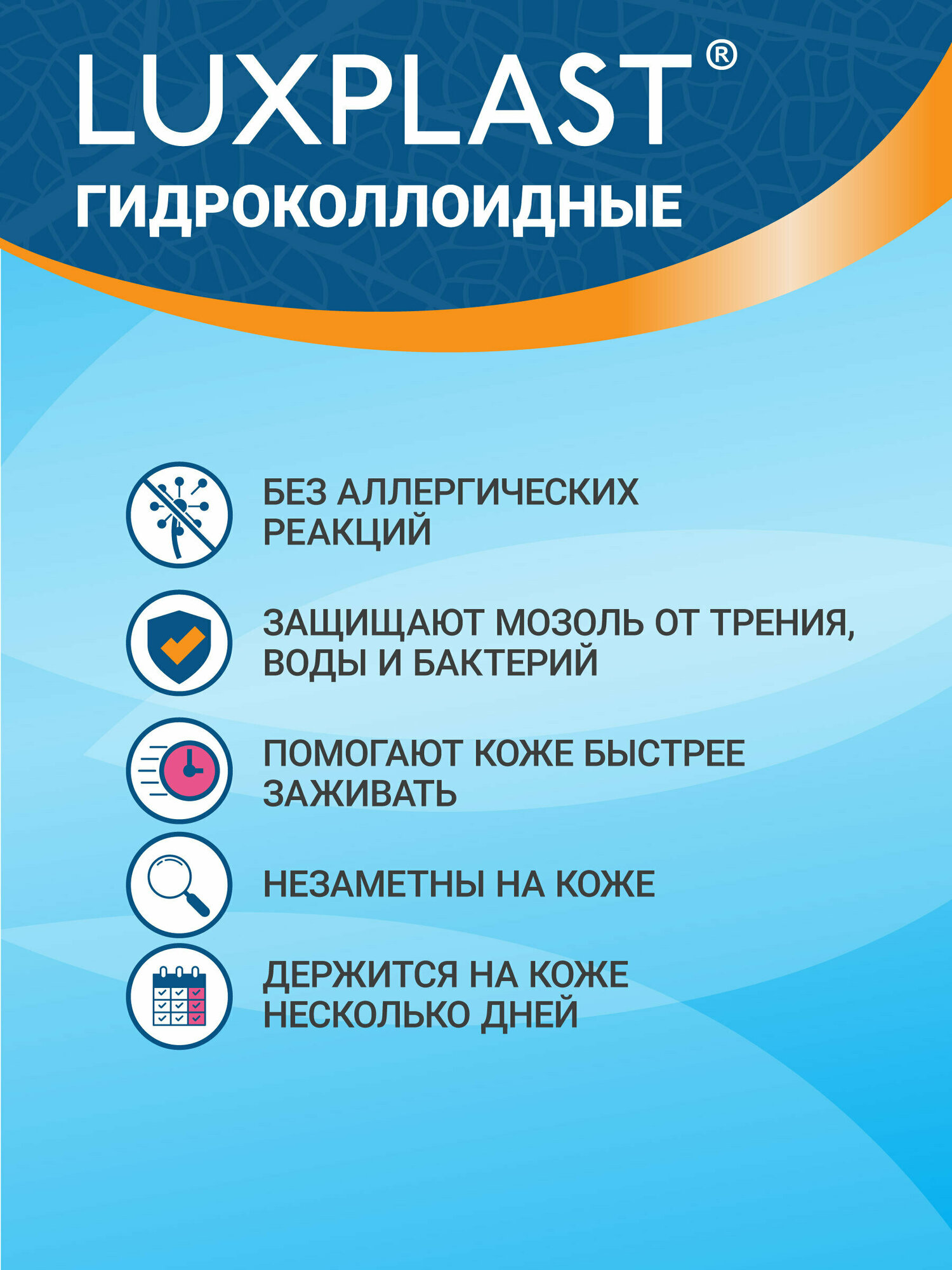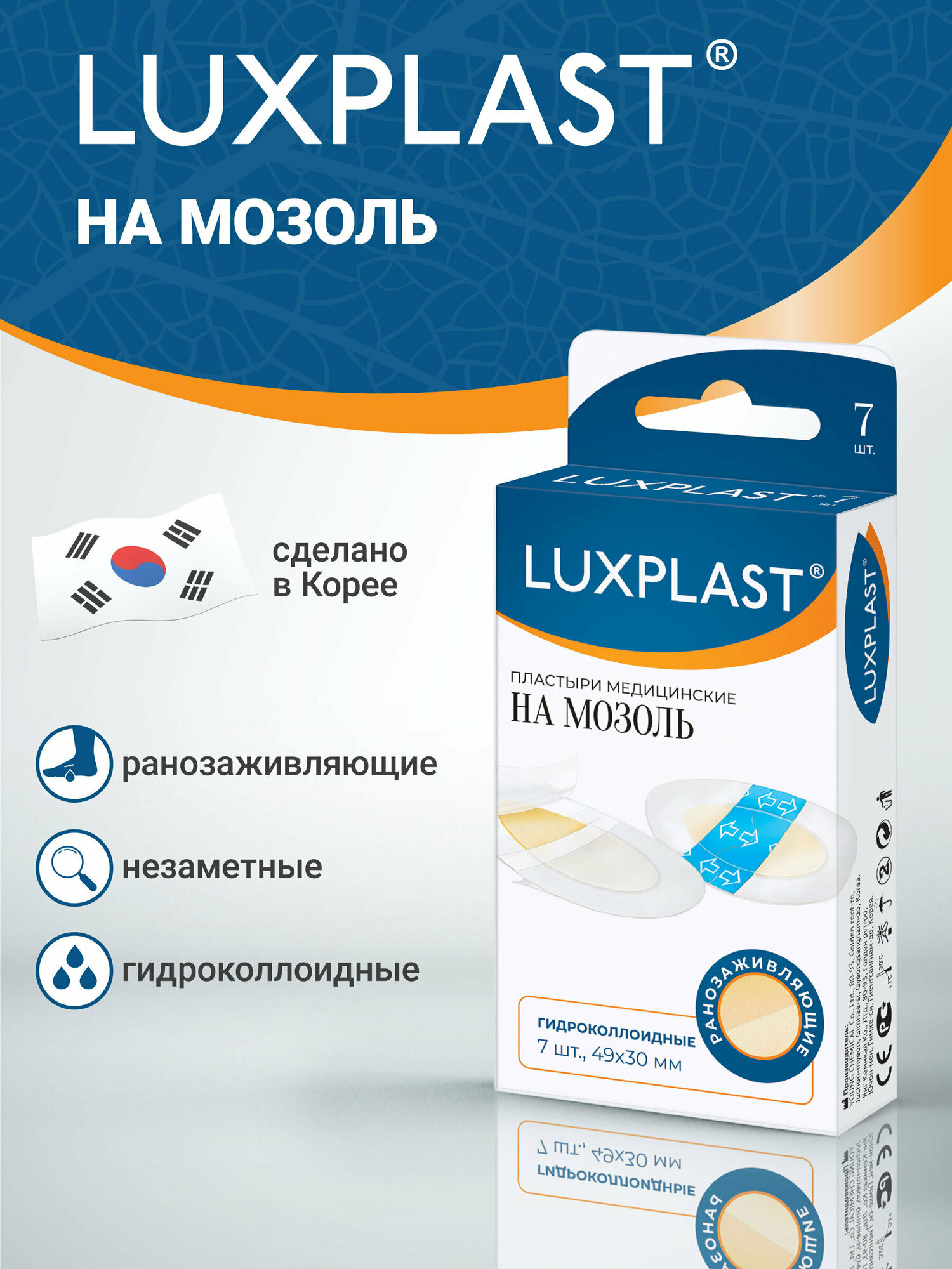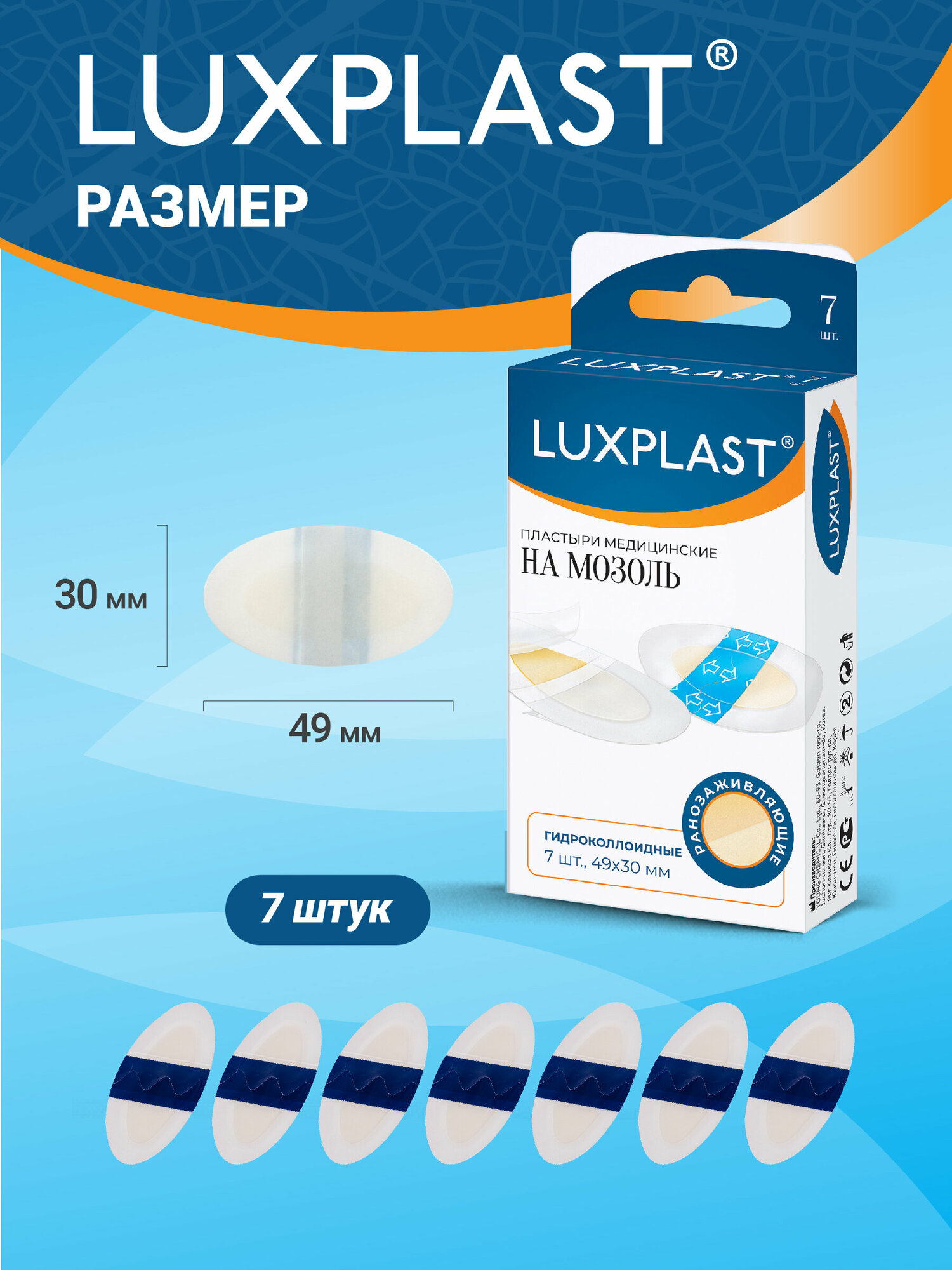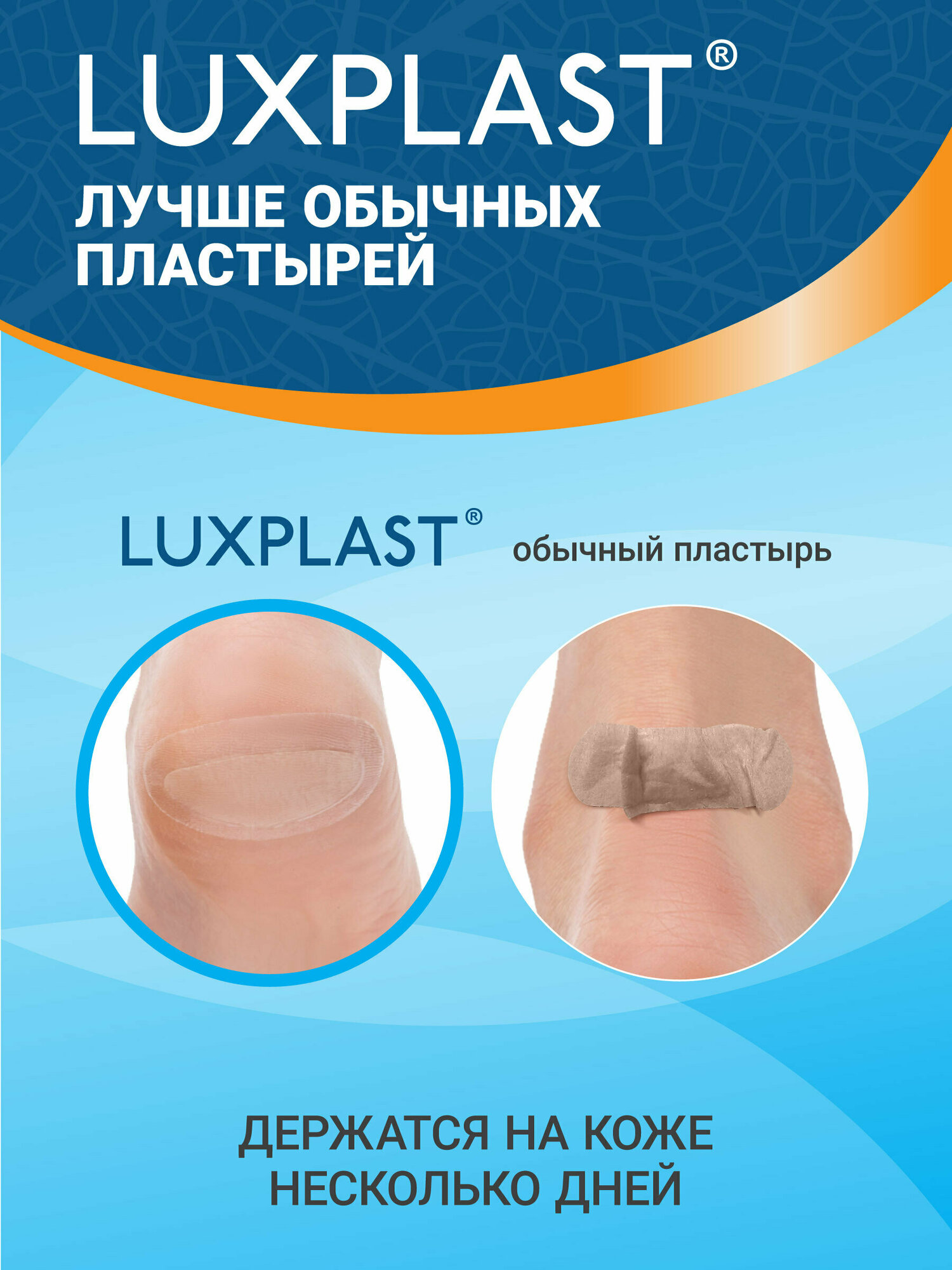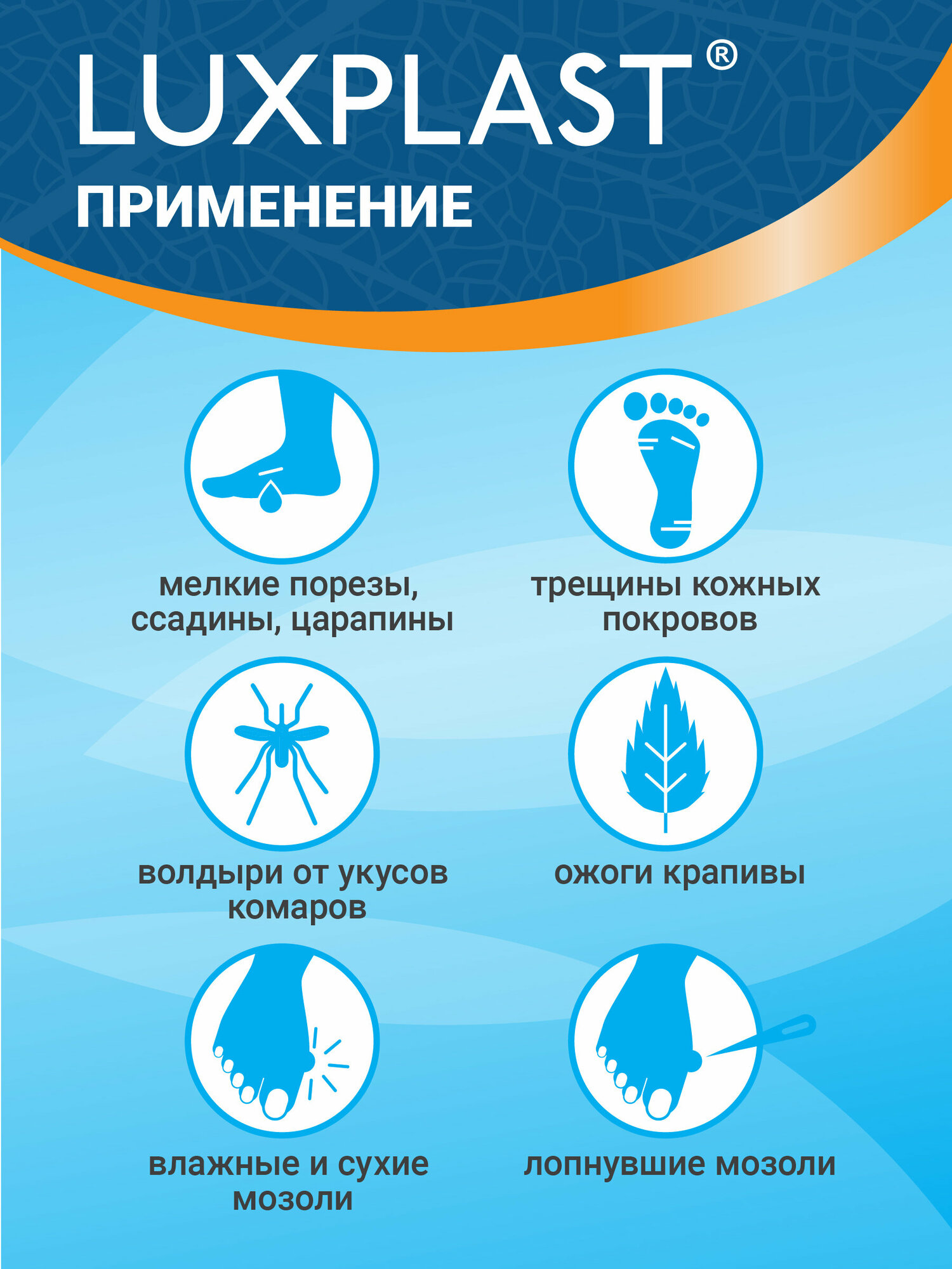 Дизайн линейки отличается от других пластырей Luxplast цветом логотипа – он синего цвета.