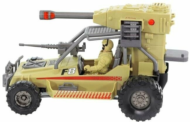 Во время стрельбы плазмопушка светится красным и движется, имитируя отдачу. Водитель удобно размешается внутри кабины. Пулемет поворачивается во все стороны. На боевой машине имеются точки крепления еще для трех фигурок солдат. Канистру можно закрепить на капоте.