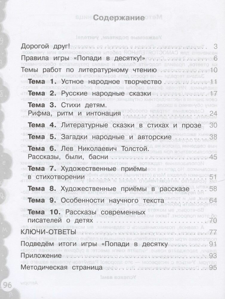 Учебное пособие "Попади в десятку! Литературное чтение. 2 класс" предназначено для систематизации знаний и отработки умений обучающихся 2 класса общеобразовательных организаций по основным разделам курса литературного чтения.