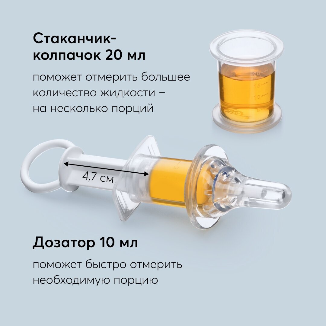 Дозатор для лекарств детский от Happy Baby — незаменимый инструмент при уходе за малышами. Этот дозатор-шприц подходит для введения жидкостей и лекарств новорожденным, что делает его идеальным выбором для заботливых родителей. Удобный и безопасный дозатор для сиропа с силиконовым наконечником обеспечивает мягкое взаимодействие с детскими деснами. Мерный стаканчик-подставка позволяет точно отмерить нужное количество детского сиропа, другой жидкости или лекарства. Широкий ограничитель помогает избежать дискомфортных ощущений при подаче лекарства в рот ребенка. Благодаря косым отверстиям на наконечнике, жидкость распределяется плавно и аккуратно, избегая прямого попадания в горло, обеспечивая безопасность и комфорт малыша - ребенок не подавится во время кормления или приема лекарства. Дозатор 10 мл оснащен мерной шкалой для точного дозирования содержимого. Его поршень надежно подает лекарство без излишков и проливов. В комплекте идет стаканчик-крышка объемом 20 мл также с мерной шкалой, который можно использовать как подставку после использования шприца для кормления. Удобная ручка обеспечивает простой захват дозатора-шприца даже одной рукой. Материалы выдерживают регулярное использование без потери качества и легки в уходе. Все детали изготовлены из высококачественных материалов. Этот дозатор идеально подходит тем, кто ищет надежное решение для ухода за здоровьем самых маленьких членов семьи. Он не только облегчает задачу родителю при введении любых необходимых жидкостей или медикаментов ребенку, но и обеспечивает максимальную безопасность процесса, благодаря продуманной конструкции.