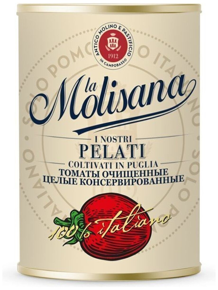 Томаты очищенные La Molisana – сочные помидоры без кожицы в густой пикантной томатной мякоти. Без добавления уксуса и масла. Можно использовать для приготовления горячих блюд или в качестве гарнира. Консервированные помидоры используют в кулинарии в качестве закуски и как украшение стола. Продукт гармонично сочетается с блюдами из мяса и рыбы, картофелем, гарнирами из бобовых и различных круп. Консервированные помидоры используют в качестве ингредиента при создании соусов и некоторых видов супов.