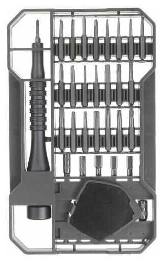| Комплектация | Магнитный держатель, биты 64 шт., гибкий удлинитель, пинцет, пластмассовые пятиугольники 3 шт., присоска, рычаги 2 шт. |