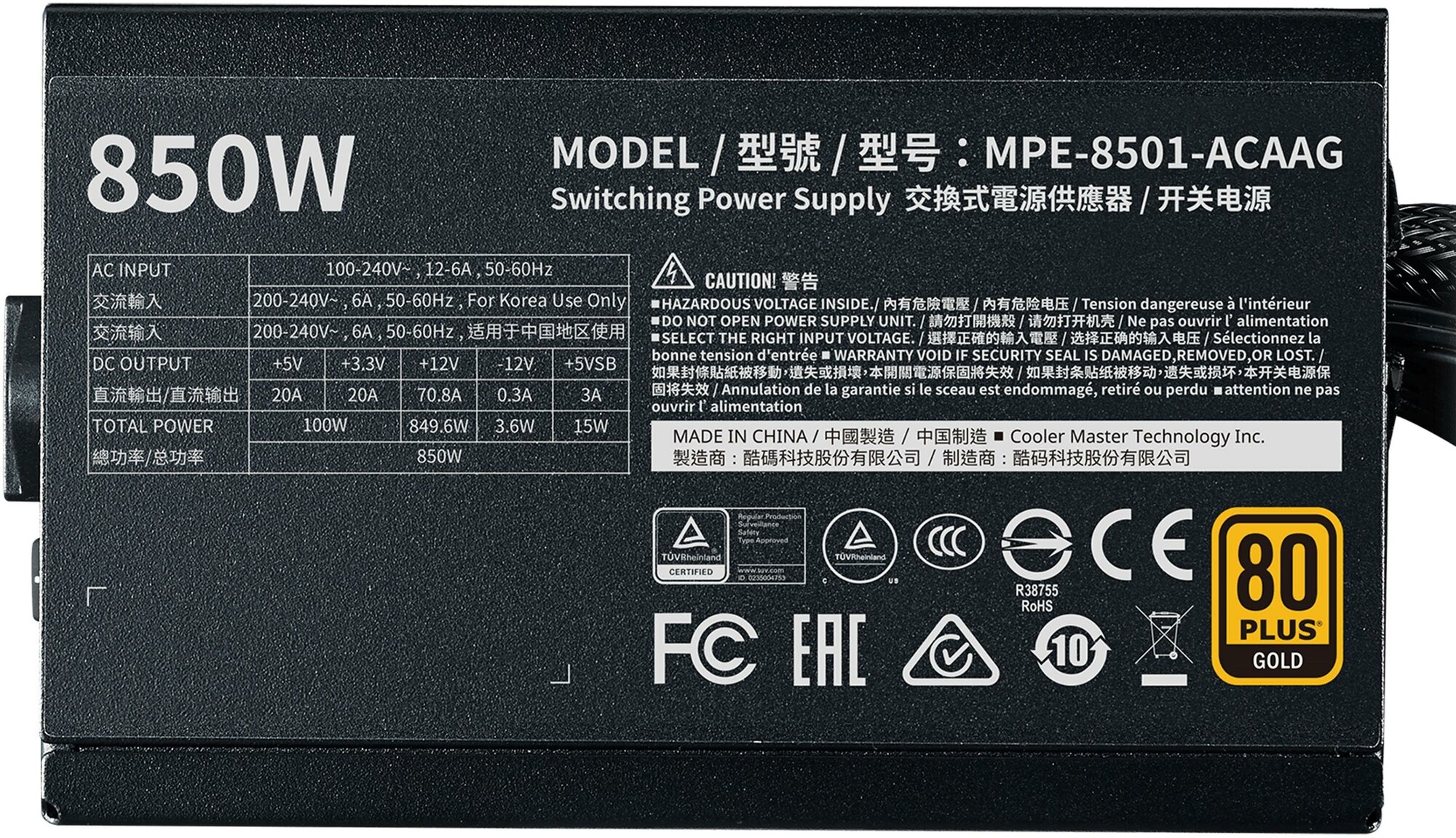 Блок питания Cooler Master MPE-8501-ACAAG-EU 850W 80 Plus Gold MWE Gold V2 850