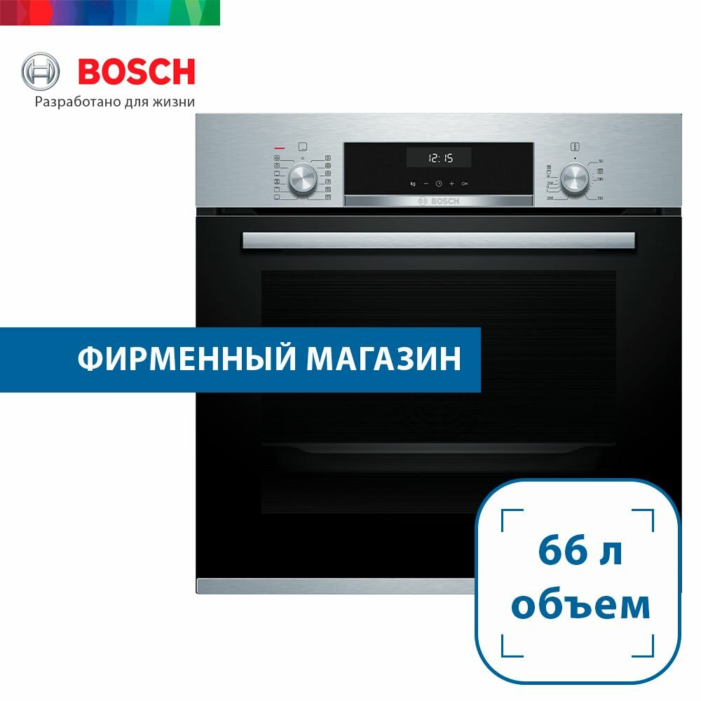 Электрический духовой шкаф Bosch – это широкий выбор режимов, которые позволят готовить самые разные блюда, простое и удобное управление и стильный лаконичный дизайн. Объём – 66 л, так что вы сможете загружать довольно большие порции, например, крупную птицу или окорок.