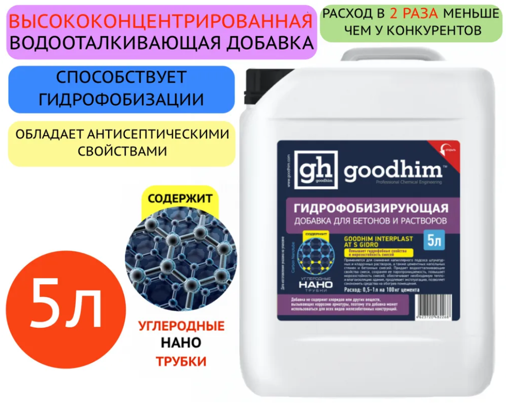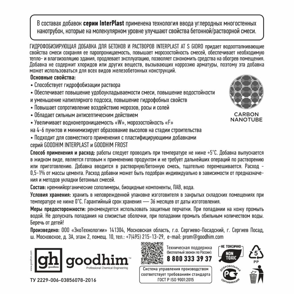 Гидрофобизирующая добавка для бетонов и растворов Goodhim Interplast at s gidro 5 л