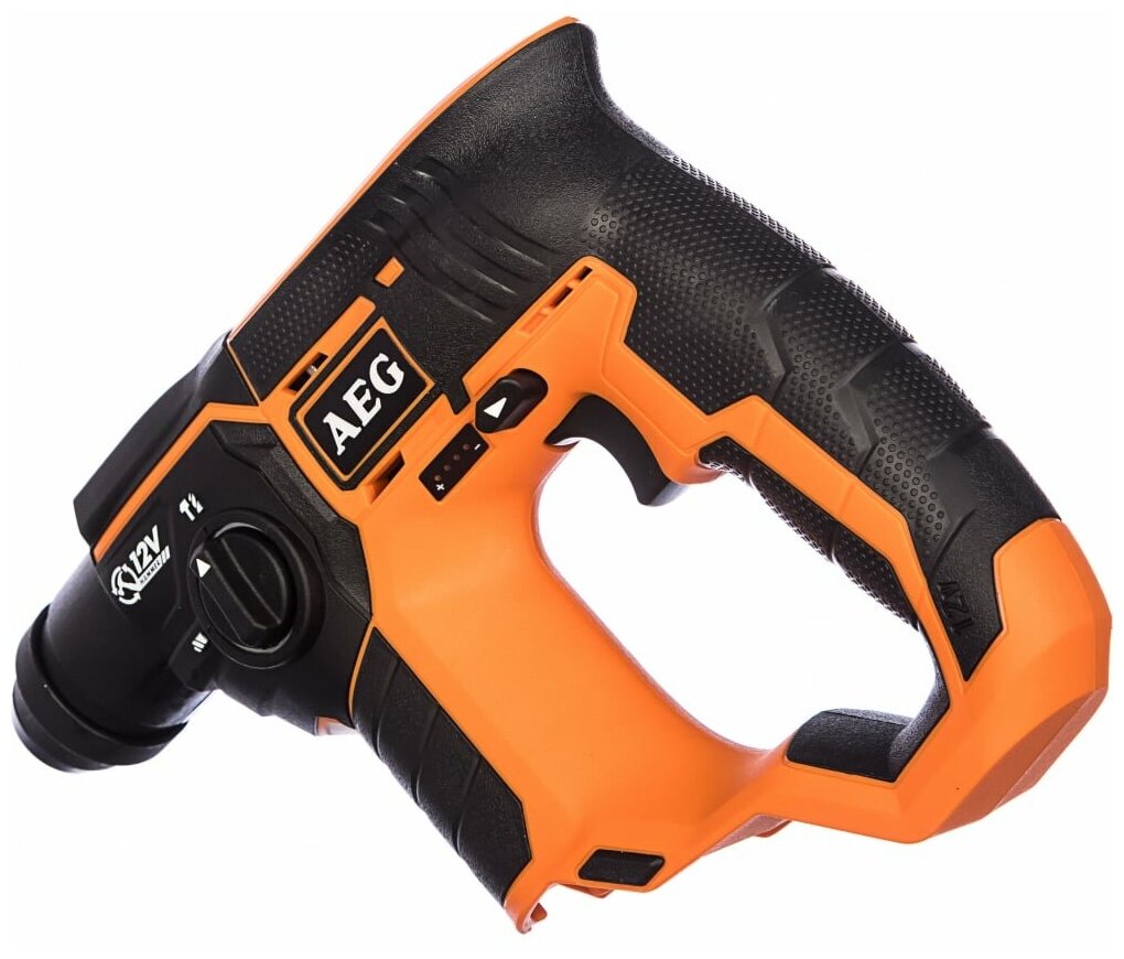 Аккумуляторный сверхкомпактный перфоратор SDS-plus 12В. Перфоратор L - образной формы для бурения в бетоне отверстий до 13 мм и закручивания крепежа. Энергия удара 0,9 Дж обеспечивает высокую эффективность работы. Функция отключения удара для безударного сверления в дереве и металле. Встроенный индикатор уровня заряда. Металлический корпус редуктора для увеличения надежности. Предохранительная муфта для защиты пользователя. Технология AEG Pro Lithium Ion с защитой от перегрузки для максимальной надежности аккумулятора и инструмента. Поставляется с переходником для бит. Инструмент поставляется без аккумулятора и зарядного устройства, что является отличным выбором для тех, у кого уже имеется аккумуляторный инструмент AEG вольтажом 12В с цилиндрическими аккумуляторами.