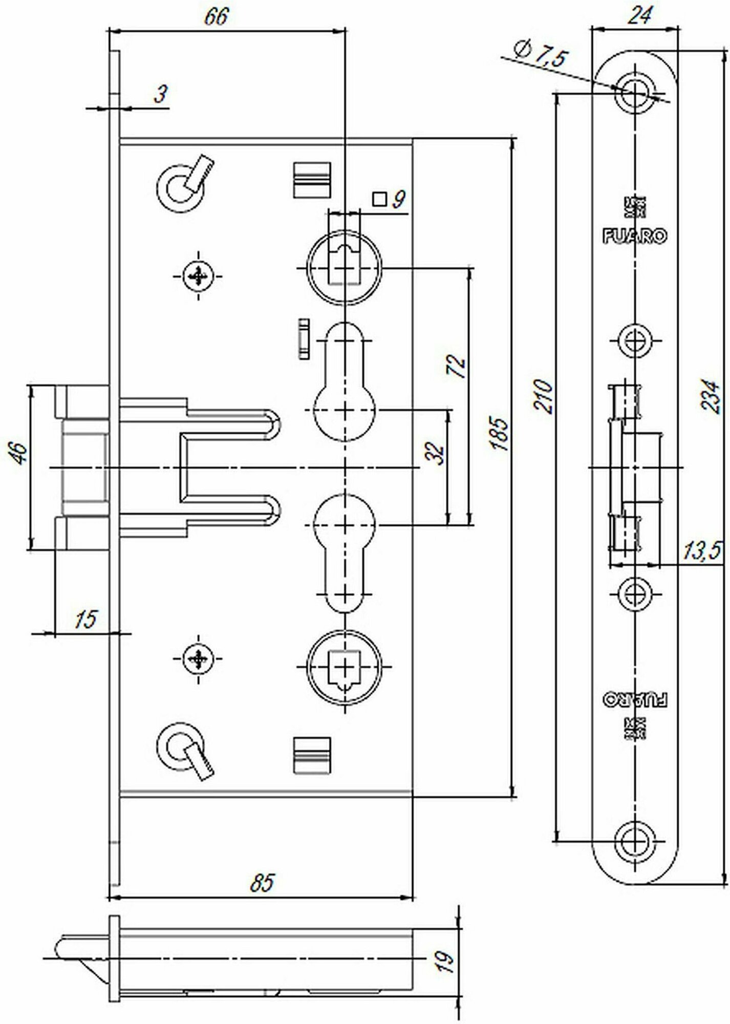 Корпус врезного Fuaro замка для противопожарных дверей FL-0432