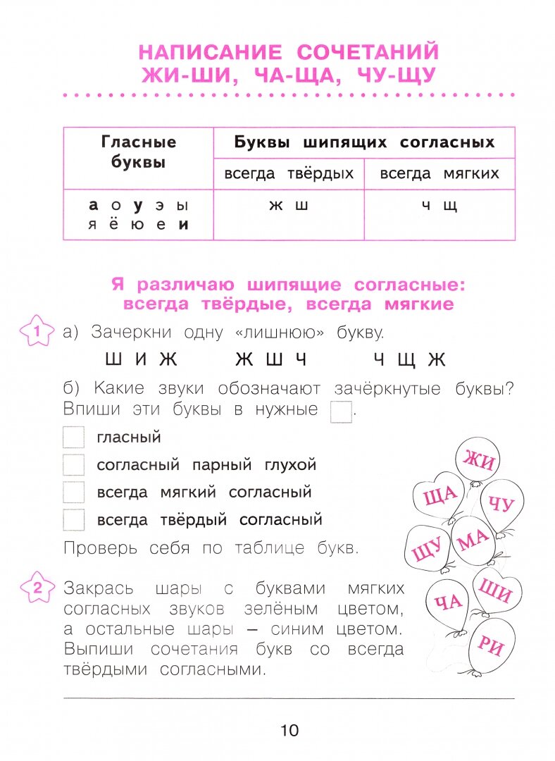 В пособие включены темы: оформление предложения; написание сочетаний жи-ши, ча-ща, чу-щу; перенос слов; прописная буква в именах собственных; отсутствие Ь в сочетаниях букв Ч, Щ с другими согласными.