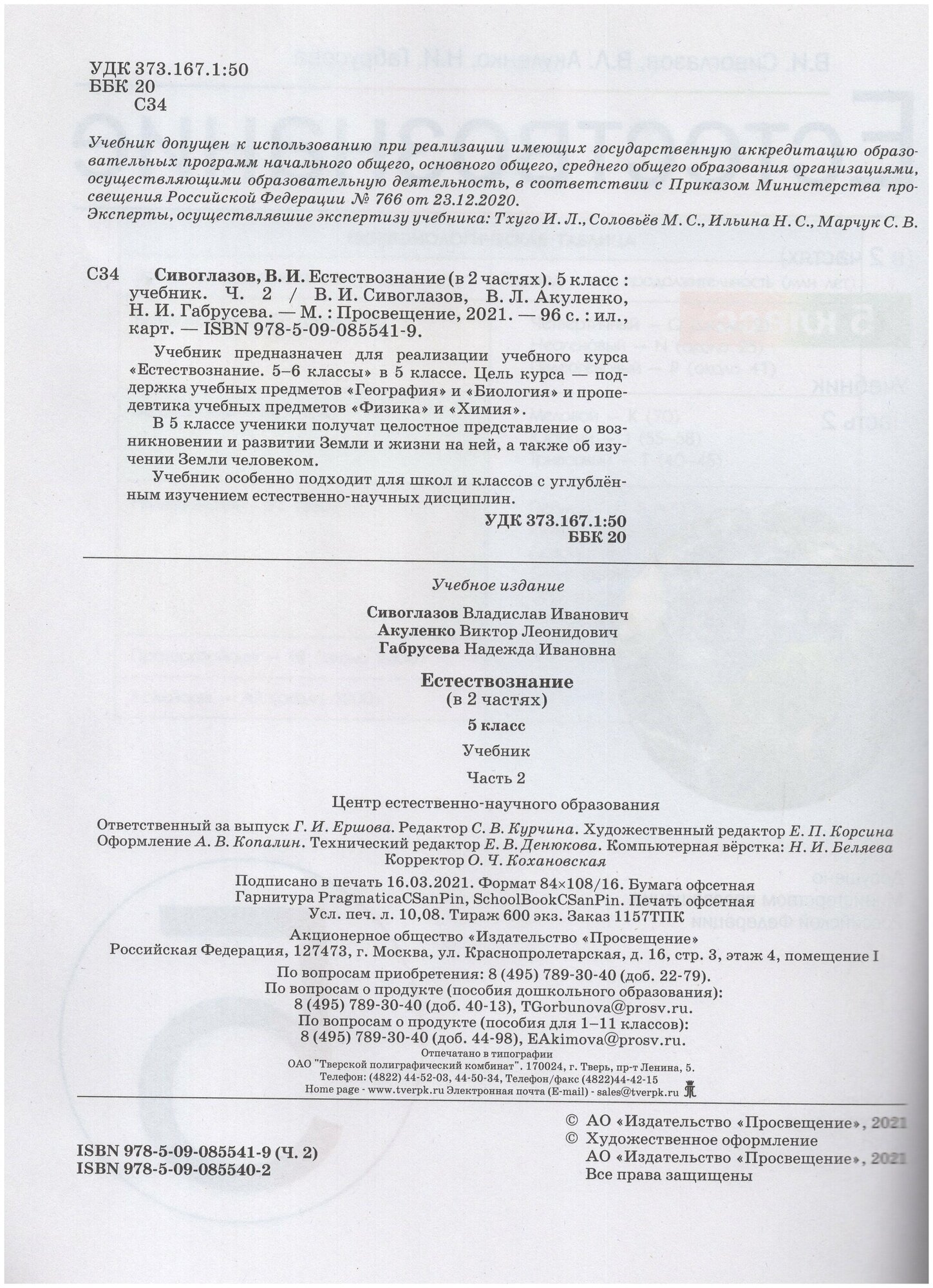 Естествознание. 5 класс. Учебник. В 2-х частях (Сивоглазов Владислав Иванович, Габрусева Надежда Ивановна, Акуленко Виктор Леонидович); Просвещение, 2024