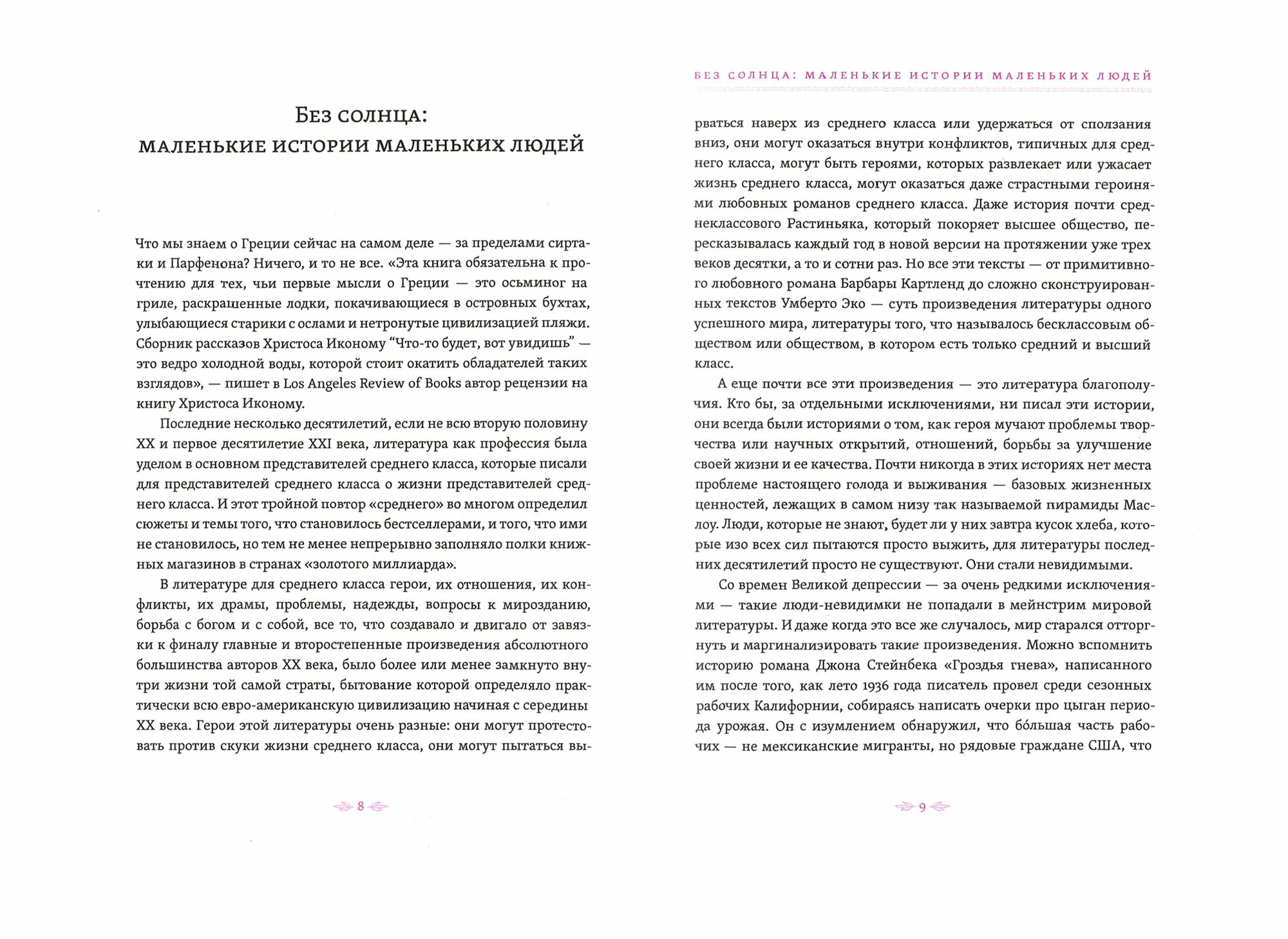 "Что-то будет, вот увидишь" - сборник рассказов греческого писателя Христоса Иконому, в котором показана совсем не та Греция, какой мы привыкли видеть ее. Это не Греция из мифов с богами и героями, не Античность с философией и культурой, не солнечная и туристическая страна. Здесь Греция показана через истории людей, живущих в реальности, оставленной экономическим кризисом.