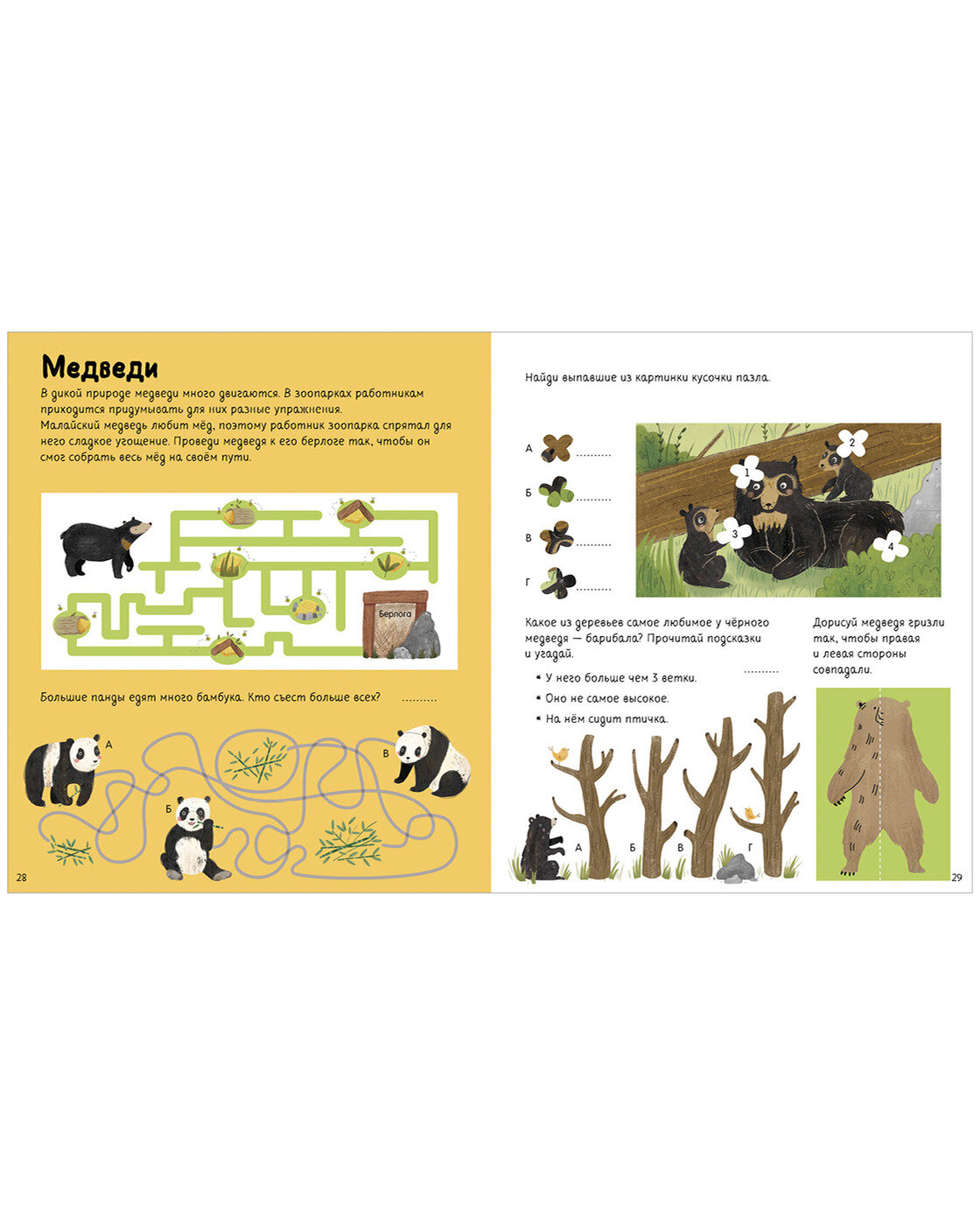 Лабиринты и раскраски, логические задачки и находилки, а также другие увлекательные задания - все это вы найдете в нашей книжке. ?А еще вы познакомитесь со всеми обитателями зоопарка. Вперед!