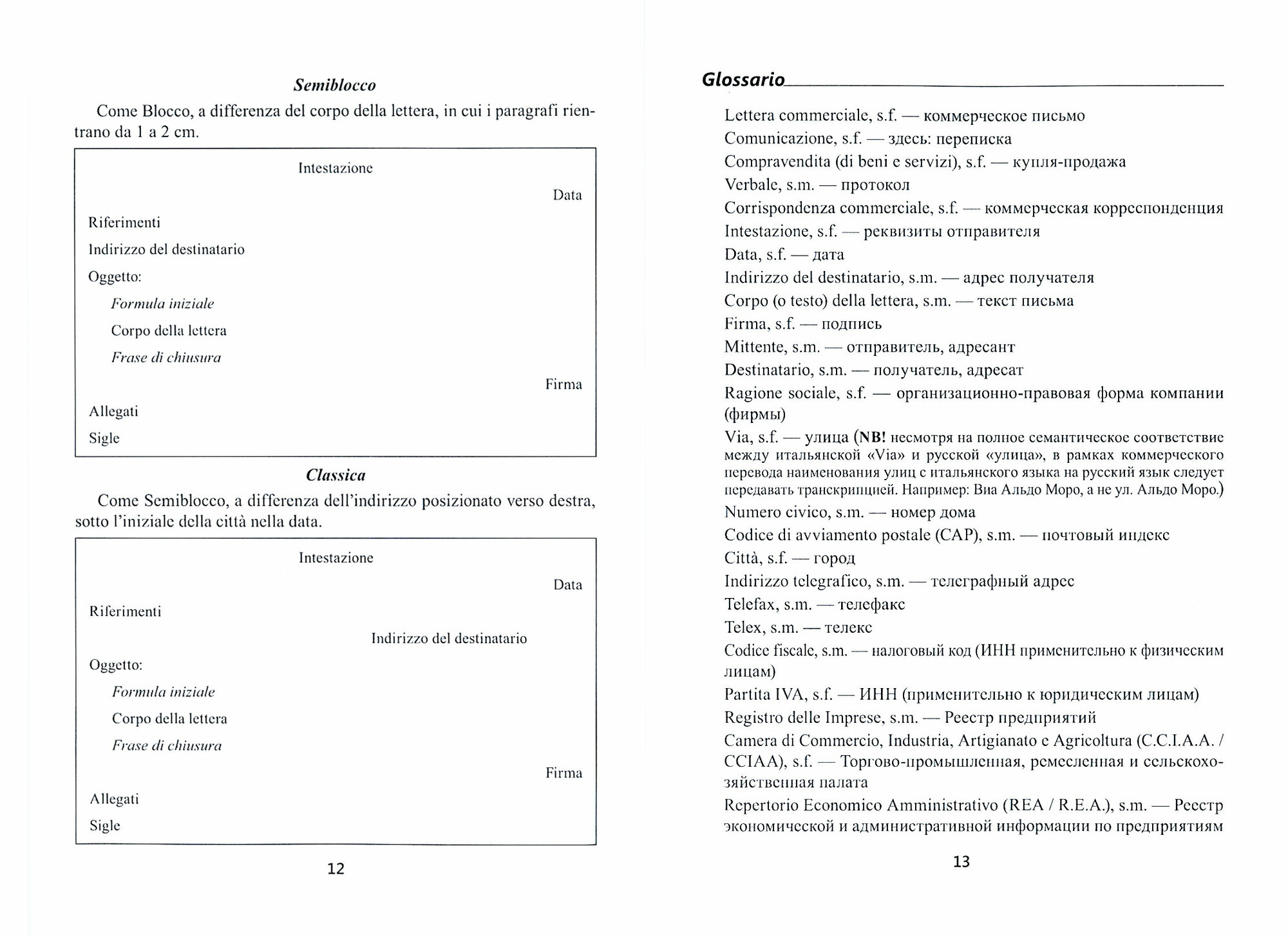 Цель пособия - ознакомить студентов с особенностями составления коммерческой корреспонденции на итальянском языке, а также сформировать и развить навыки перевода текстов, функционирующих в сфере внешнеэкономической деятельности, необходимые для успешного осуществления переводческой деятельности в области коммерческого перевода. Каждый раздел включает вводный текст, принадлежащий к жанру коммерческой корреспонденции. После текста приводятся упражнения, направленные на проверку степени усвоения студентами нового материала, а также закрепление ранее пройденного. Сам текст и отдельные упражнения снабжены словником, включающим как термины, имеющие непосредственное отношение к тематике текста, так и лексику общеупотребительного плана. Приложения содержат информацию, без которой не обходится коммерческая корреспонденция и внешнеэкономическая документация на итальянском языке: наименования итальянских провинций; сокращения, используемые в деловой переписке; названия должностей, принятых в итальянских компаниях; международные условия поставки Инкотермс.