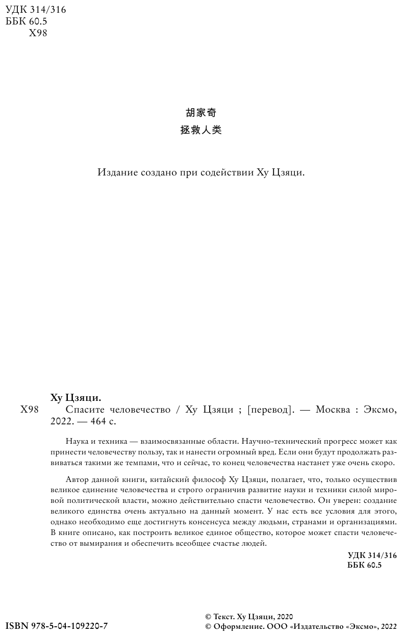 Книга: Спасите человечество (Цзяци Ху); ООО "Издательство "Эксмо", 2022
