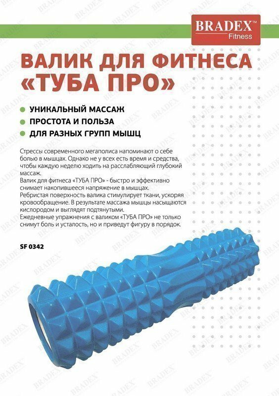 Ролик для фитнеса «ТУБА» - это эффективный инструмент в борьбе за здоровое, подтянутое тело и Ваш личный массажер. Специальное покрытие валика стимулирует кровообращение, расслабляет мышцы. Ежедневные занятия с валиком делают мышцы подтянутыми и упругими.