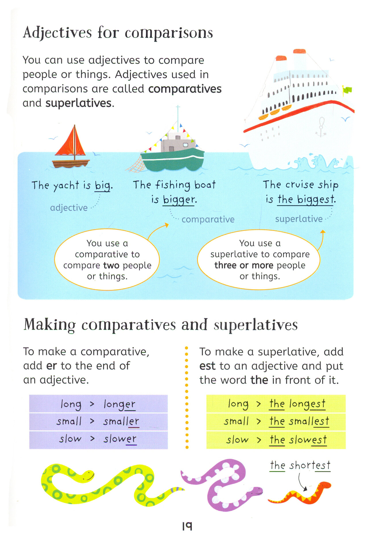 An easy-to-use introduction to grammar and punctuation for young children, featuring sections on nouns, adjectives, punctuation, writing skills and more. With simple explanations, colourful illustrations and lots of examples throughout, plus quizzes, writing tips and links to specially selected websites with puzzles and videos.