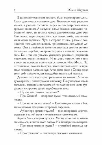 Через всю книгу идёт детективная линия с поиском преступников, которые покушаются на жизнь Соньи, княжны и шептуньи этих земель. Все оказалось проще, чем я ожидала, но очень жизненно.