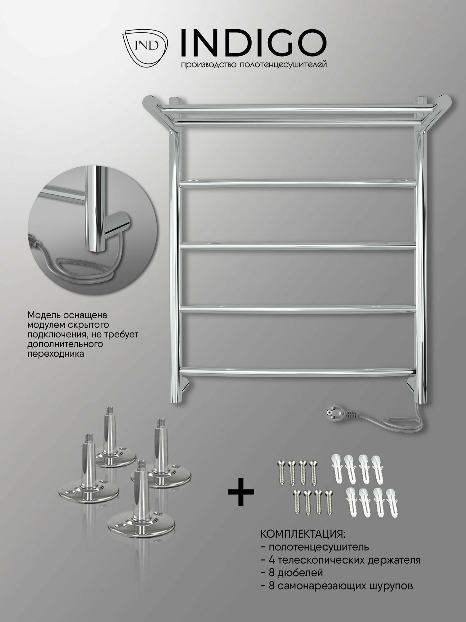 Полотенцесушитель электрический INDIGO Arc с полкой в размере 600х500 (ВхШ) выбирают за его классический вид лесенки и универсальность. Модель оснащена кнопкой включения на нижней части стойки. Универсальность изделия предусматривает подключение через прямой провод, который переставляется на нужную вам сторону или скрытое подключение без покупки дополнительного переходника. Длина прямого провода 1,2 метра. Полотенцесушитель Arc относится к энергоэффективным изделиям, потребляемая мощность в данном размере 85 Вт. Специальная технология нагревательного кабеля защищает полотенцесушитель от перегрева, что влияет на длительные сроки службы. В комплектации идут 4 телескопических держателя, комплект для монтажа и гарантийный паспорт. Полотенцесушитель INDIGO Arc застрахован и имеет гарантию 3 года. Выбирая INDIGO вы получаете надежный продукт из нержавеющей стали с гарантией качества от Российского производителя.