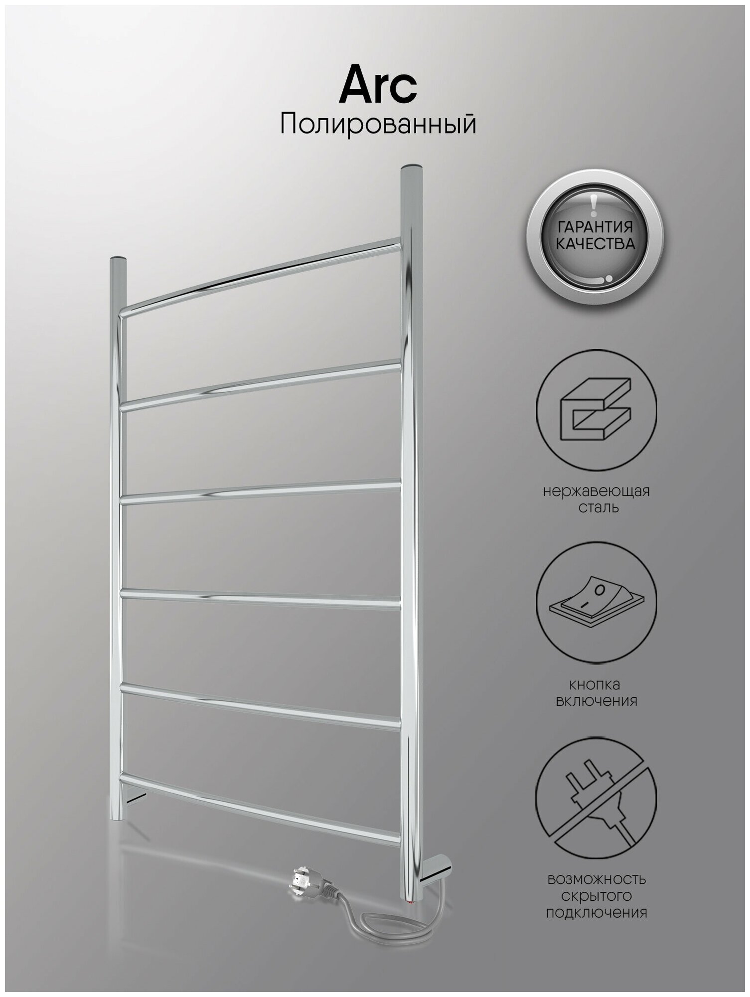 Полотенцесушитель электрический INDIGO Arc в размере 800х500 (ВхШ) выбирают за его классический вид лесенки и универсальность. Модель оснащена кнопкой включения на нижней части стойки. Универсальность изделия предусматривает подключение через прямой провод, который переставляется на нужную вам сторону или скрытое подключение без покупки дополнительного переходника. Длина прямого провода 1,2 метра. Полотенцесушитель Arc относится к энергоэффективным изделиям, потребляемая мощность в данном размере 90 Вт. Специальная технология нагревательного кабеля защищает полотенцесушитель от перегрева что влияет на длительные сроки службы. В комплектации идут 4 телескопических держателя, комплект для монтажа и гарантийный паспорт. Полотенцесушитель INDIGO Arc застрахован и имеет гарантию 3 года. Выбирая INDIGO вы получаете надежный продукт из нержавеющей стали с гарантией качества от Российского производителя.