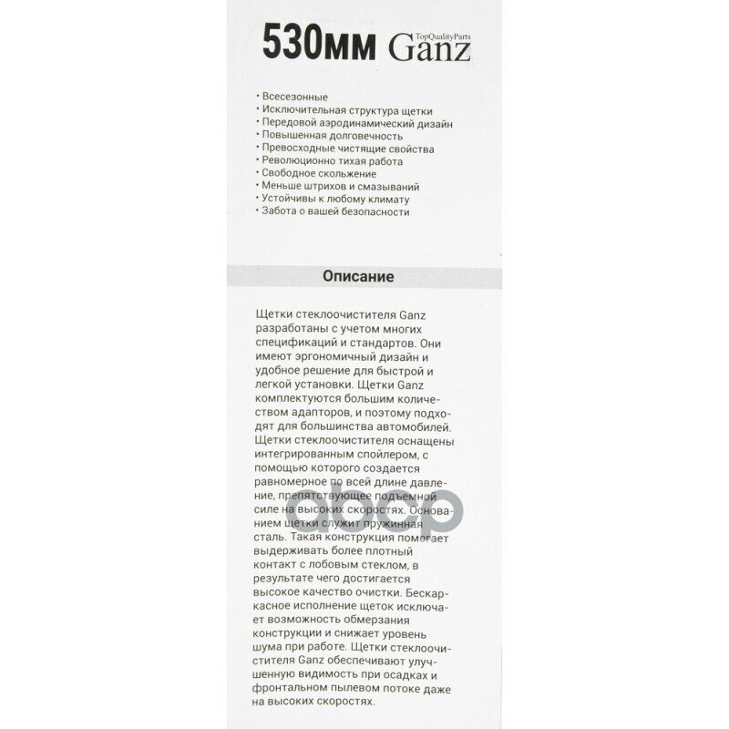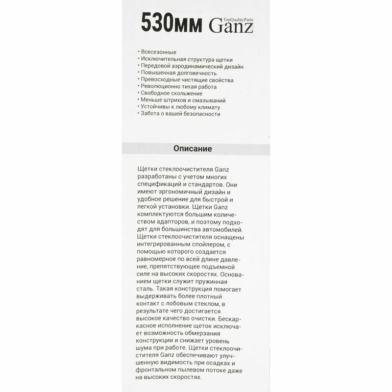 Щетки стеклоочистителя GANZ обеспечивают отличную видимость и безопасность вождения в самых сложных погодных условиях.