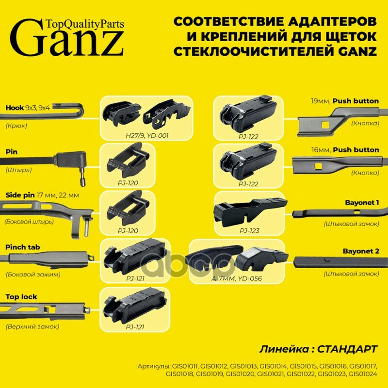 Щетки стеклоочистителя Ganz