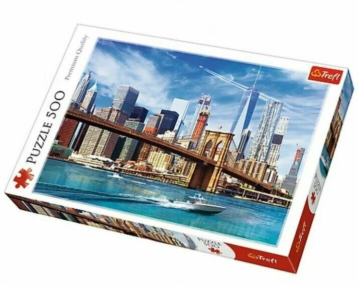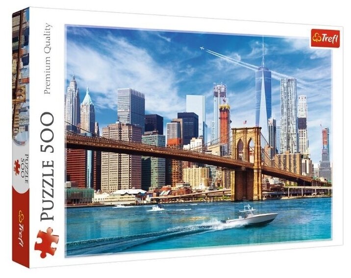 Пазлы Нью-йорк от польского бренда Trefl состоят из 500 фигурных элементов для сборки фотокартины с изображением вида на американский город.
