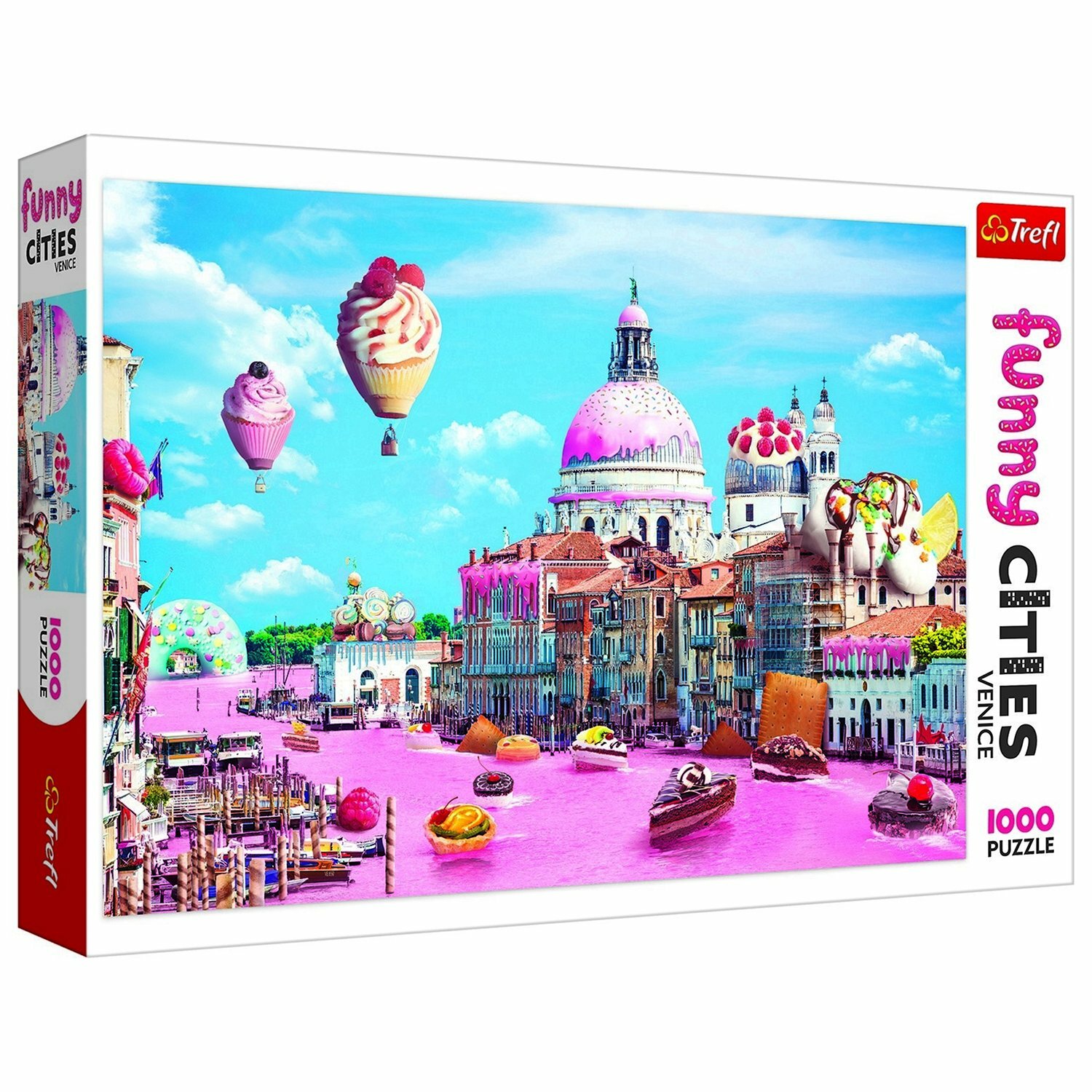 Пазлы Сладости в Венеции входит в серию Funny Cities от ТМ Trefl, которая посвящена представлению разных городов мира в юмористической и сюрреалистической концепции.