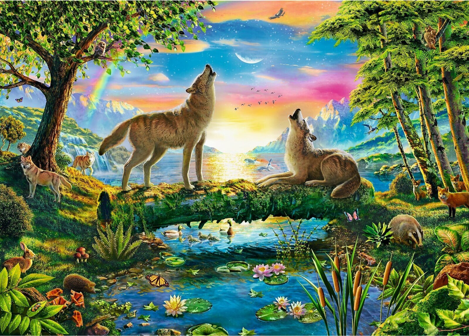 Пазлы Волчья натура от польского бренда Trefl состоят из 500 фигурных элементов для сборки картины с изображением волков на фоне леса.