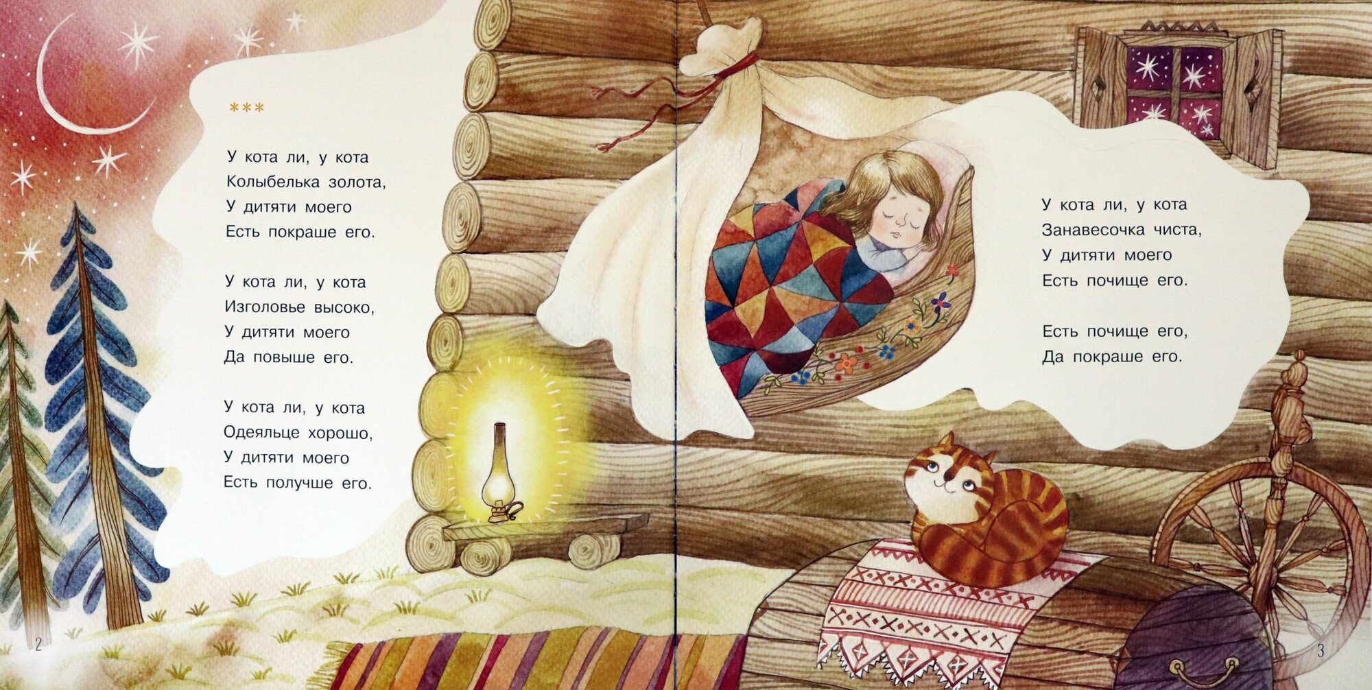 • Котовые колыбельные успокоят малыша, создадут ощущение уюта и тепла, а добрая сказка об упрямом котёнке, заблудившемся в ночном лесу, наполнит дом сладкой дрёмой.