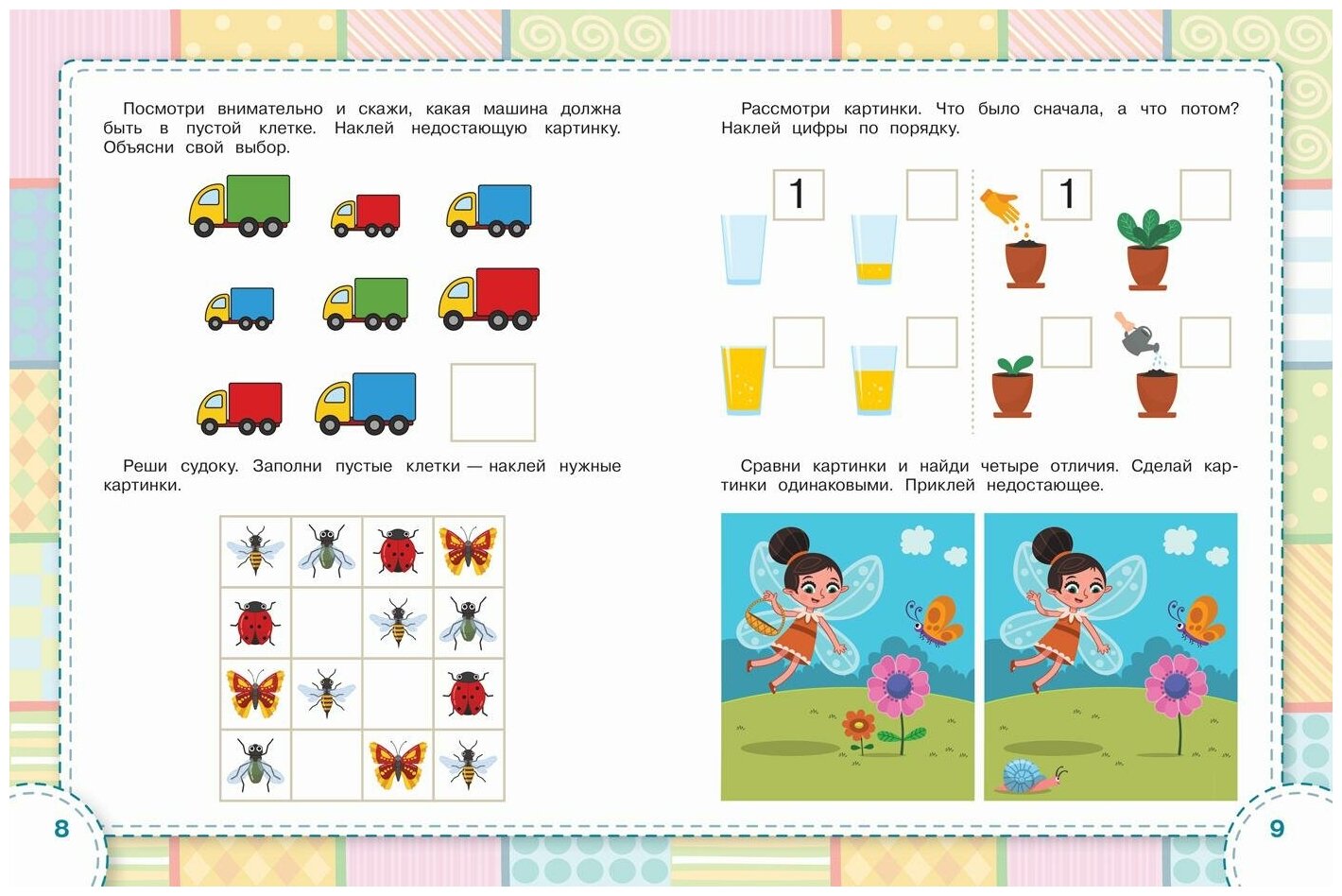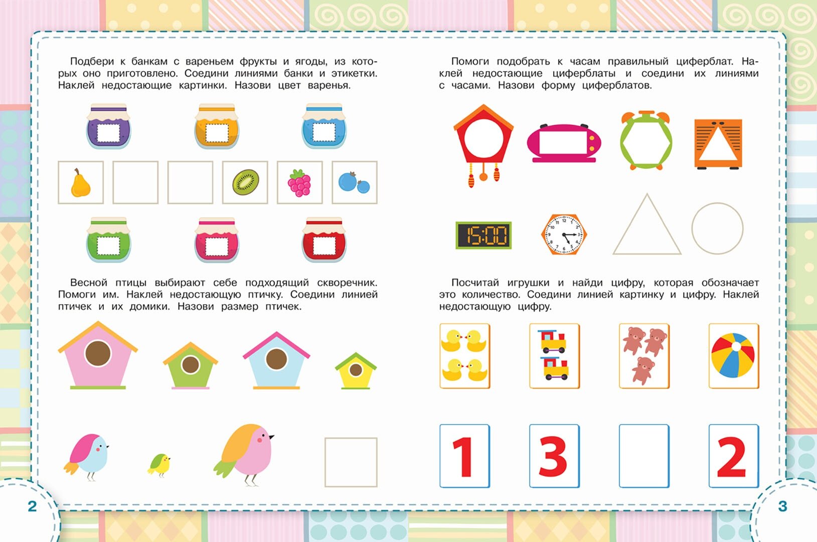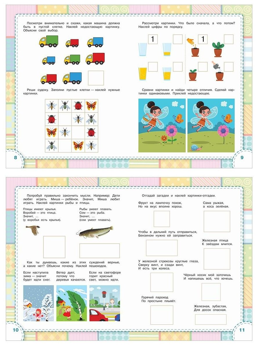 Развивающие пособия с многоразовыми наклейками и яркими иллюстрациями.