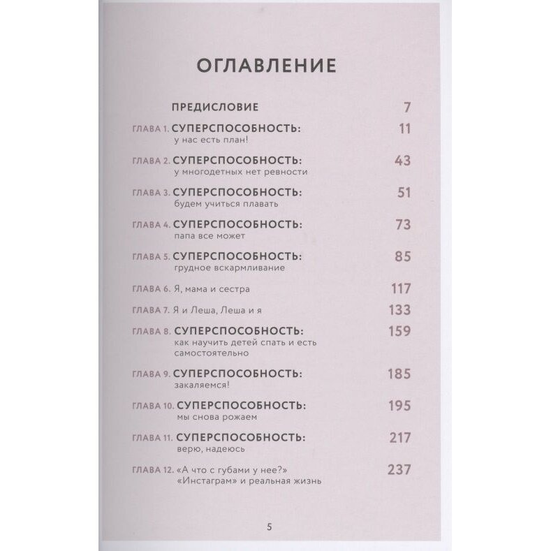 Эта книга для всех, у кого есть дети - один или пятеро, неважно! Тысячи позитивных лайфхаков и бесценные рекомендации по поводу всего, из чего состоит настоящая, без фильтров и лукавства, жизнь родителей. Мы все часто думаем, что не справляемся, не успеваем, недодаем семье внимания. Что только у нас дети капризничают и не хотят засыпать, разливают суп и ревнуют родителей друг к другу. Что только мы везде опаздываем, забываем важное, ссоримся с мужем по пустякам. Эта книга поможет и поддержит!