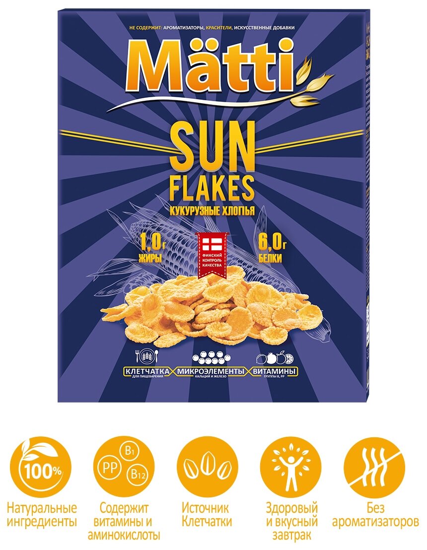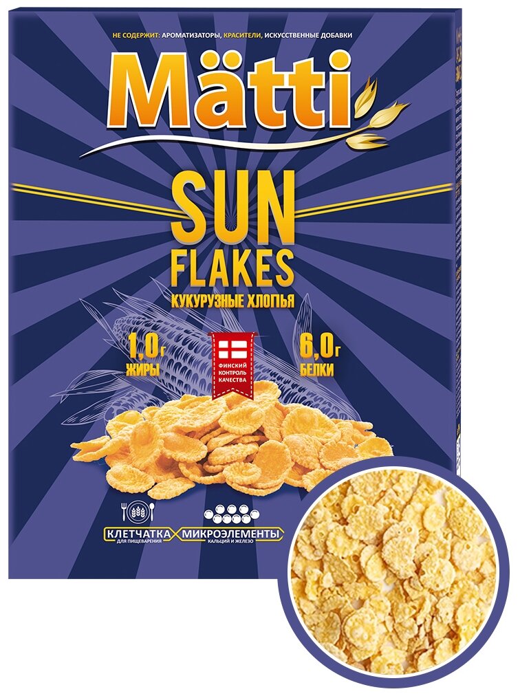 Сервис сравнения цен СкидкаГИД предлагает сравнить цены на товар «Хлопья Matti Sun Flakes кукурузные 250г»