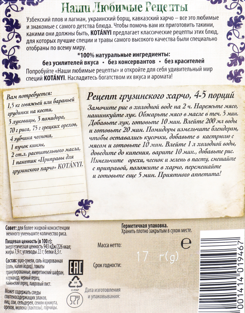 Сервис сравнения цен СкидкаГИД предлагает сравнить цены на товар «Приправа Kotanyi для Грузинского харчо 17г»