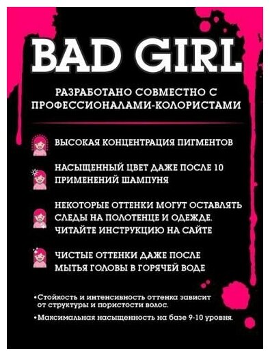 BAD GIRL Neon Shock – для тех, кто привык добиваться желаемого. Без сомнений, нет задачи, которая оказалась бы тебе не по плечу. Независимо от того, что именно ты задумала – просто сменить цвет волос или кардинально поменять всю свою жизнь.
