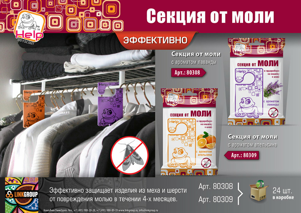 - Секция от моли с ароматом лаванды (Help) обзор 80308 бренд Help производитель ЛинкГрупп ПТК (Россия)