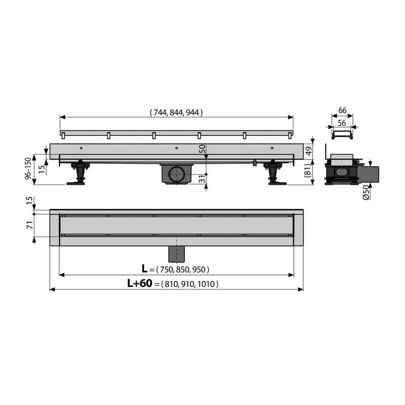 | Вид решётки | С щелью для воды, под плитку |