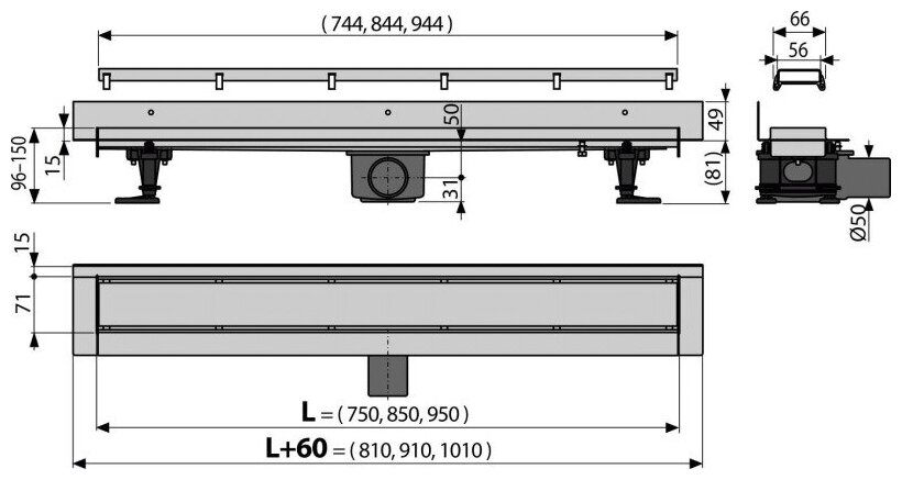 Душевой лоток Alcaplast Modular Wall APZ23-750.