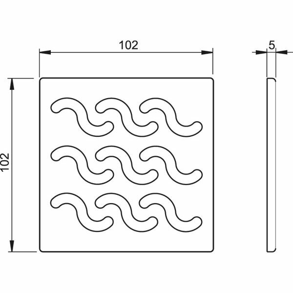 - Решетка подойдет для сливных трапов с размером рамки 105x105 мм.