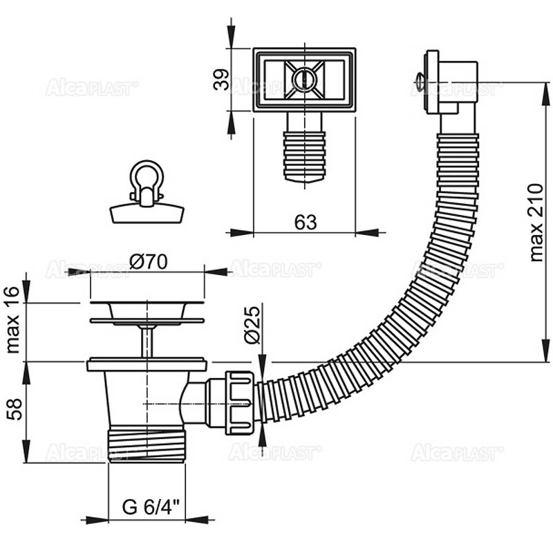 Выпуск для кухонной мойки Alcaplast A331 Нержавеющая сталь