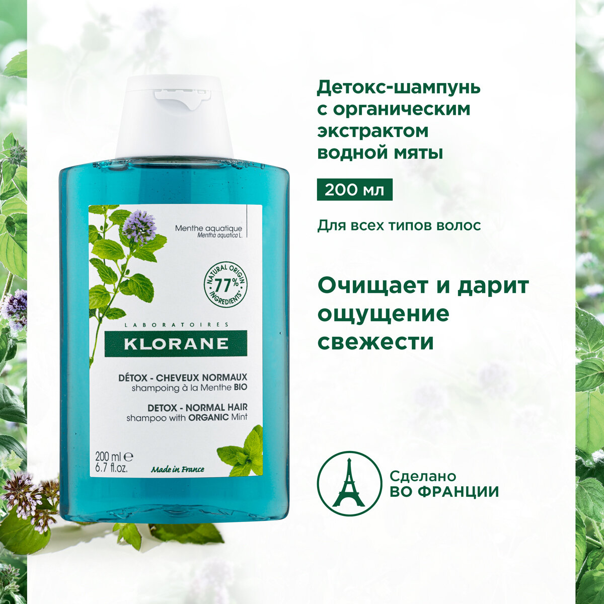 Klorane Шампунь -детокс с органическим экстрактом водной мяты 200 мл (Klorane ) (ЭХ99989414629)