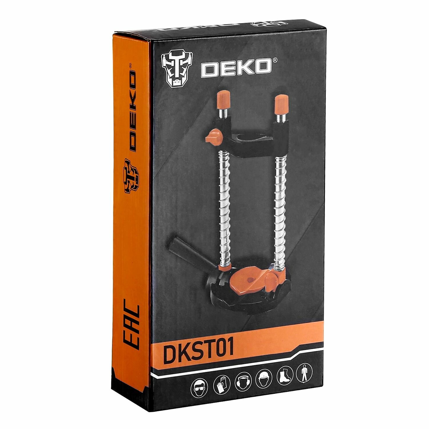 Стойка для дрели DEKO - вспомогательное приспособление для дрелей и других сверлильных инструментов. Применяется для закрепления инструмента и для горизонтального, вертикального сверления или сверления под заданным углом.Диапазон наклона: 90-45 °С.Посадочный диаметр: 42,5 мм.Рабочая высота: 237мм.