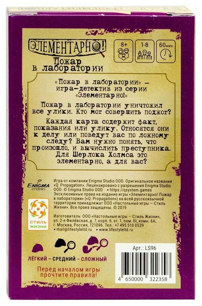 Стиль Жизни Настольная игра "Элементарно! Пожар в лаборатории" (УТ100028007)